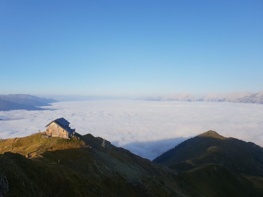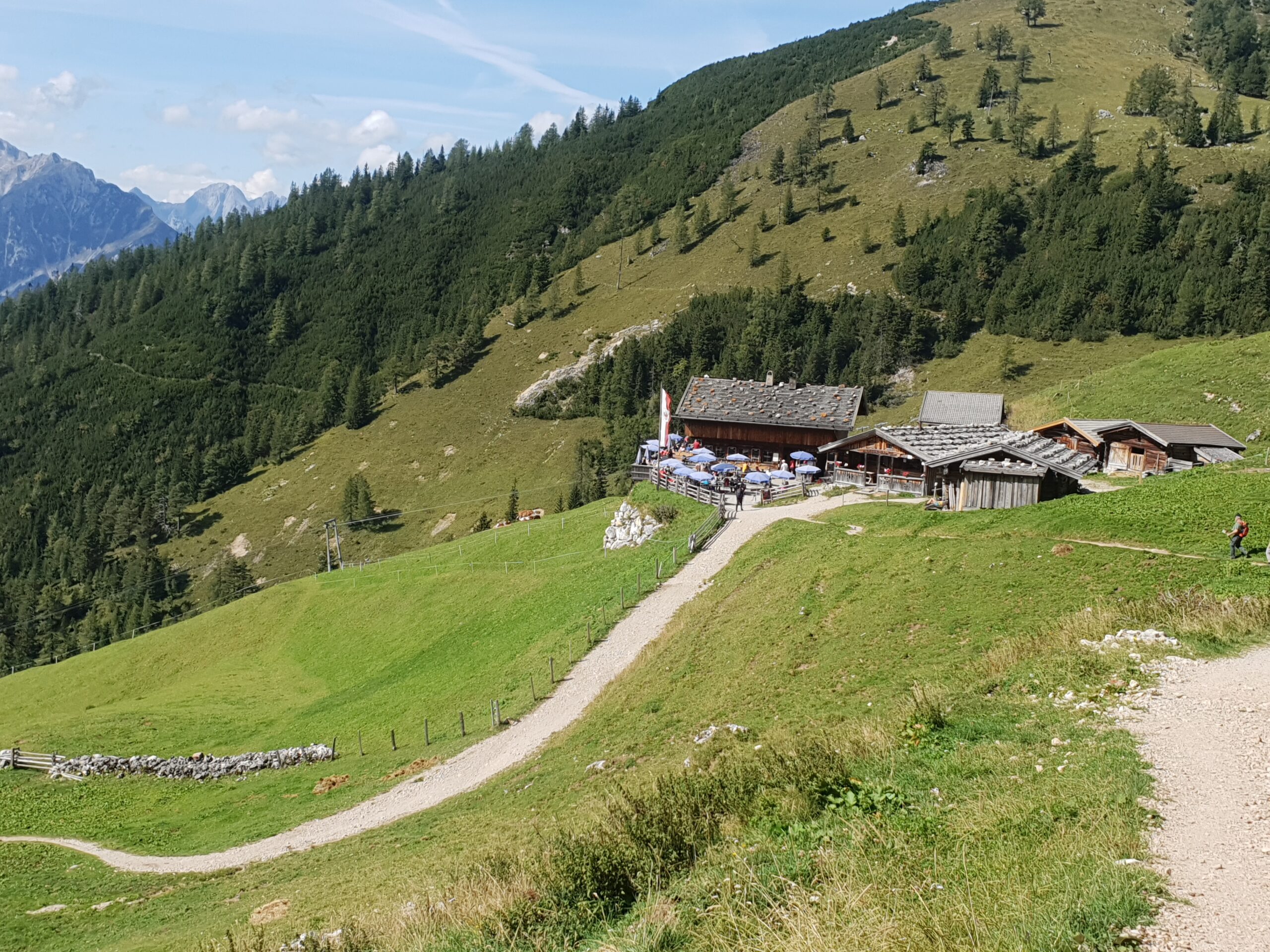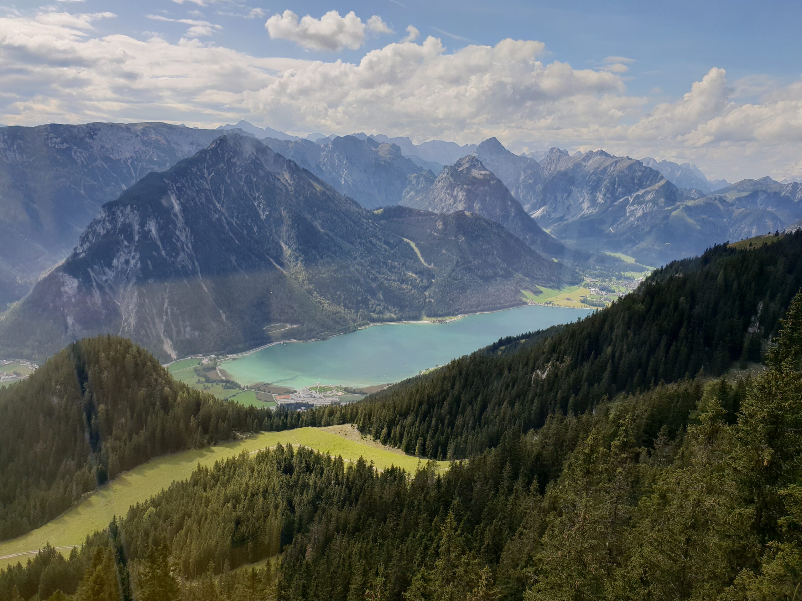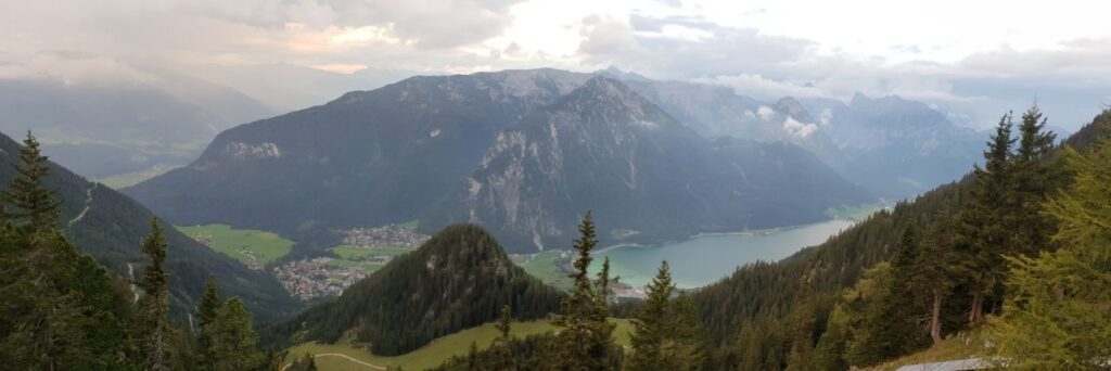 Um 08:30 machte ich mich auf den Bärenkopf (1991 m) zu ersteigen. 1100 hm waren zu bewältigen. Ich war gut drauf und erreichte den Gipfel nach 2 Stunden. Super schöne Aussicht auf den Achensee. Zurück ging es über den Weißenbachsattel zur Bärenbadalm auf einen verdienten Radler. Dann noch zum 20 Minuten entfernten Alpengasthaus Karwendel. Da ich noch Zeit hatte, genehmigte ich mir noch einen Radler, Kaspressknödelsuppe, Cappuccino und Zwetschkenkuchen. Mit vollem Bauch ließ ich mich mit der Karwendel Bergbahn (€11 Talfahrt) ins Tal bringen. Mit dem Bus (42Minuten) nach Jenbach und dann mit dem Railjet 3:59 Stunden nach Wien.