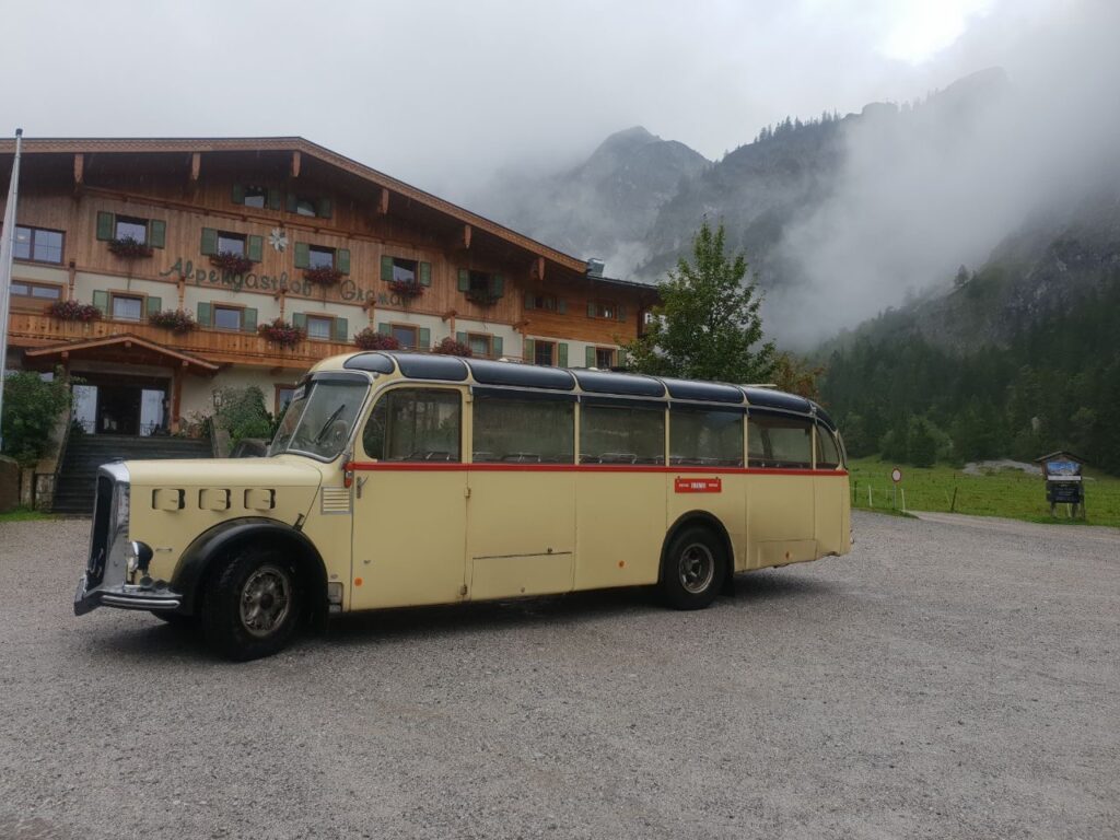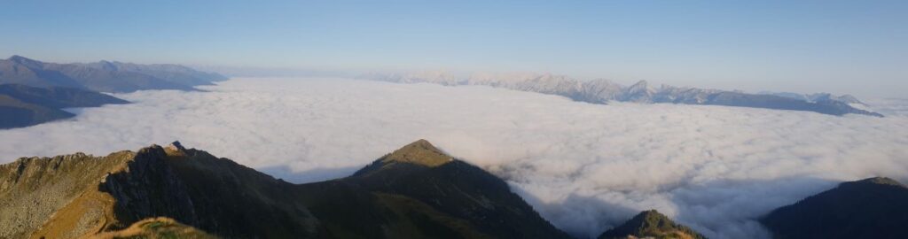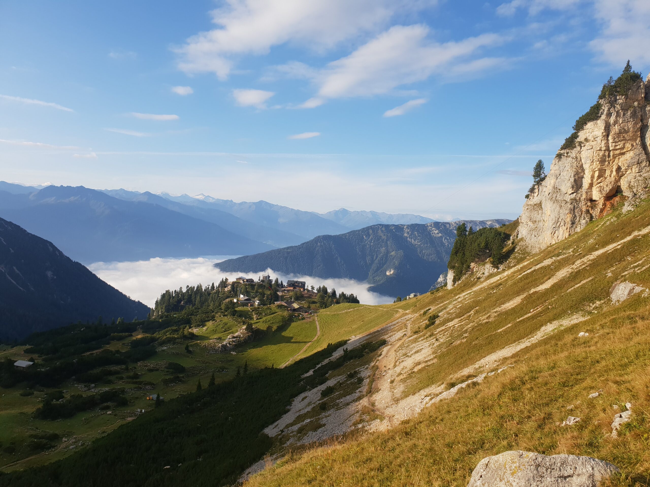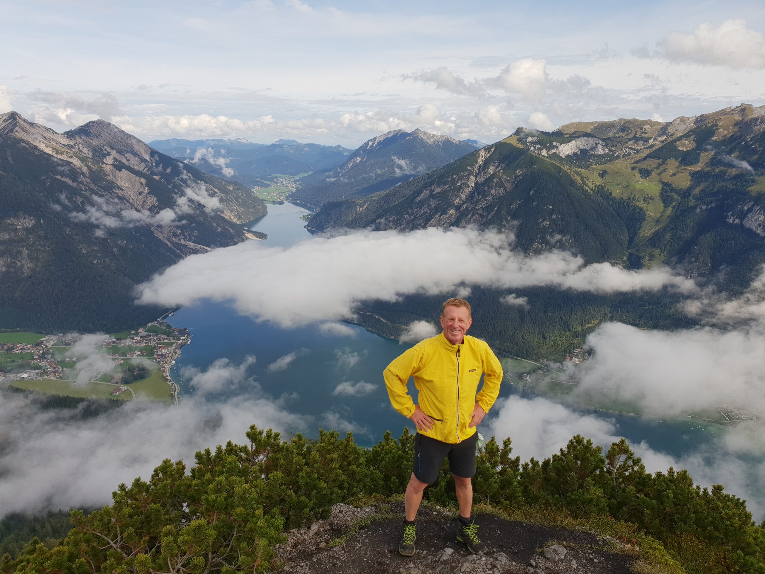 Um 08:30 machte ich mich auf den Bärenkopf (1991 m) zu ersteigen. 1100 hm waren zu bewältigen. Ich war gut drauf und erreichte den Gipfel nach 2 Stunden. Super schöne Aussicht auf den Achensee. Zurück ging es über den Weißenbachsattel zur Bärenbadalm auf einen verdienten Radler. Dann noch zum 20 Minuten entfernten Alpengasthaus Karwendel. Da ich noch Zeit hatte, genehmigte ich mir noch einen Radler, Kaspressknödelsuppe, Cappuccino und Zwetschkenkuchen. Mit vollem Bauch ließ ich mich mit der Karwendel Bergbahn (€11 Talfahrt) ins Tal bringen. Mit dem Bus (42Minuten) nach Jenbach und dann mit dem Railjet 3:59 Stunden nach Wien.